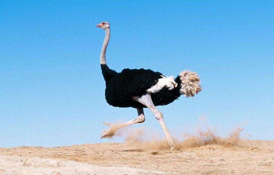 鸵鸟既然被称为鸟,为什么不能飞呢?这是因为鸵鸟由于其体形巨大,翅膀根本无法承受其庞大的体形而逐渐退化。不能飞却并不影响鸵鸟的速度。平时速度达60km/h,最快达72km/h,除了是世界上最大的鸟,鸵鸟也是世界上奔跑速度最快的动物之一。