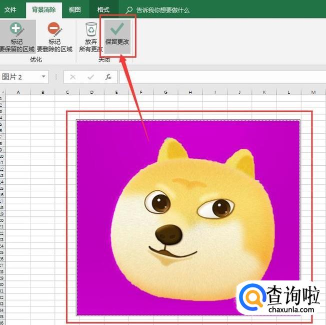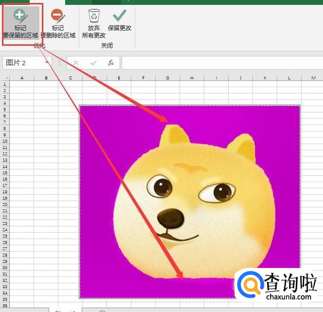 点击“标记要保留的区域”,进行选中。点击“保留更改”。