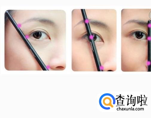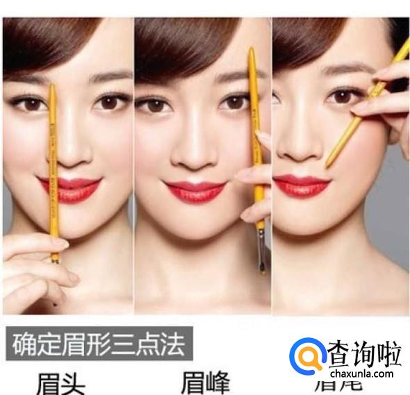 把眉笔垂直放在我们的眼尾,而眉笔的头就是我们确定的眉峰,而眉尾就更好确定了,我们只需要做到鼻翼,眼尾,眉尾在一条直线上就可以了。