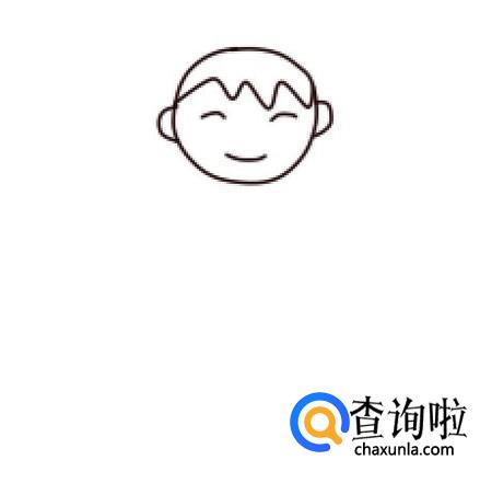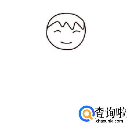 在头发下面,画两条向下弯的弧线,表示眼睛,在眼睛下面,画一条向上弯的弧线,表示嘴。