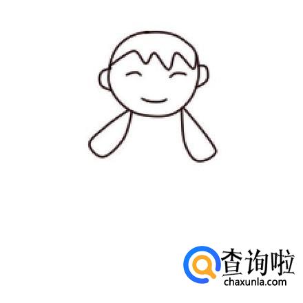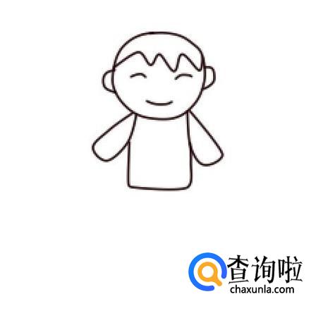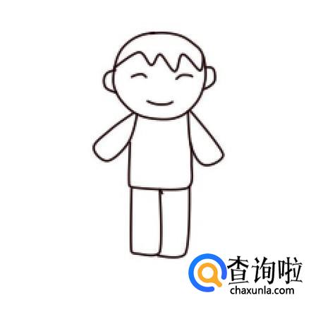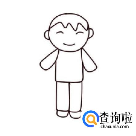 在胳膊末端,各画一个半圆形,表示手。小男孩的轮廓就画完了。