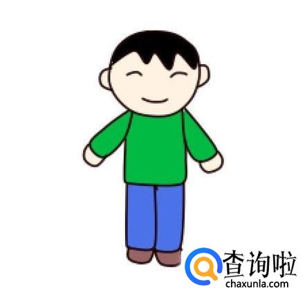 最后,给小男孩涂上自己喜欢的颜色,除了脸、手、耳朵涂肉色、其他部位喜欢什么颜色就涂什么颜色,涂匀就可以,小男孩就画完了。