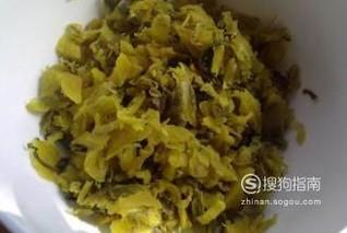 准备一些酸菜,这是我们自己家做的,如果家里没有可以去超市买,把酸菜切碎备用。