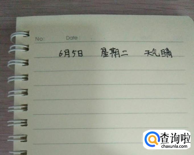 首先在日记本的首行写上日期,今天是几月几号(也可以写上哪一年),还有天气怎么样。