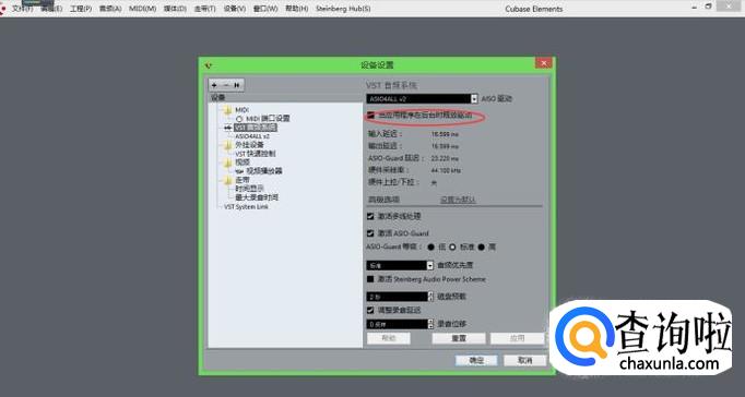 在VST音频系统设置中有一项“当应用程序在后台时释放驱动”,当Cubase在运行时,它会占用声卡通道,如果你在使用Cubase是同时打开其他音频或视频播放软件,是会没有声音的,如果你勾选了这一项,那么Cubase在你使用其他软件是会自动让出声卡通道,这样其他的软件播放时会有声音,你可以根据你的需求来决定是否要勾选这一项。