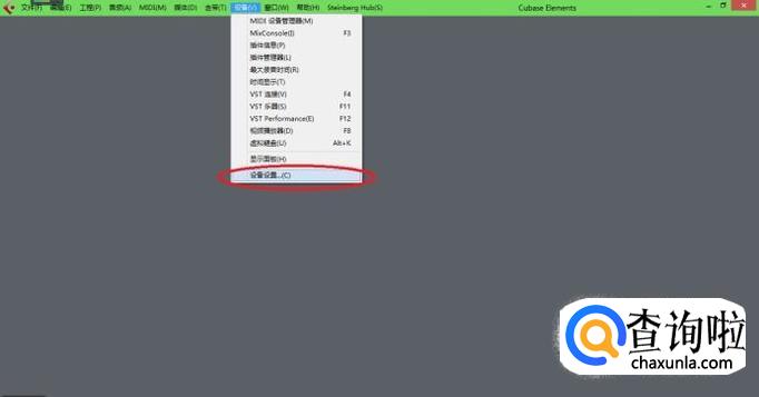 在使用Cubase8之前,要对Cubase的音频驱动进行设置。首先打开Cubase8,点击设备;