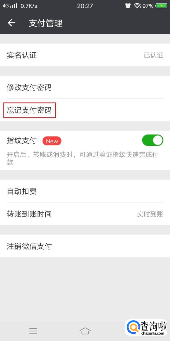 进入支付管理后,点击进入忘记支付密码,如图所示