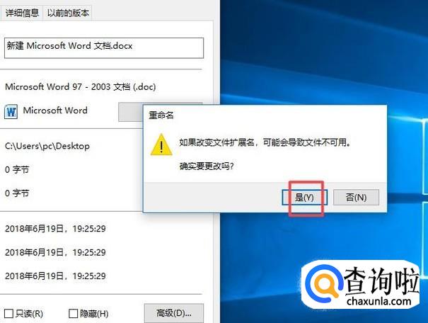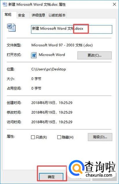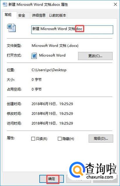 弹出的界面,我们将后缀改为docx,之后点击确定;