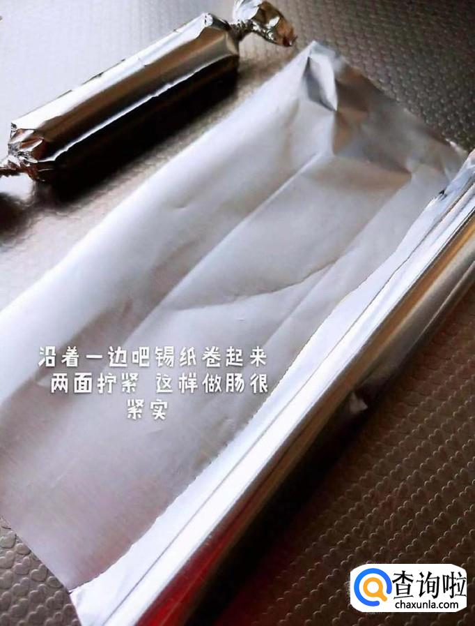 然后把鱼肉泥挤进锡纸中并做成糖果的形状,如下图所示。