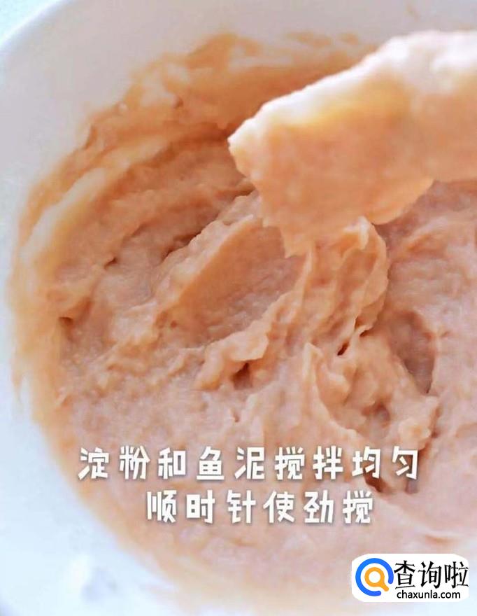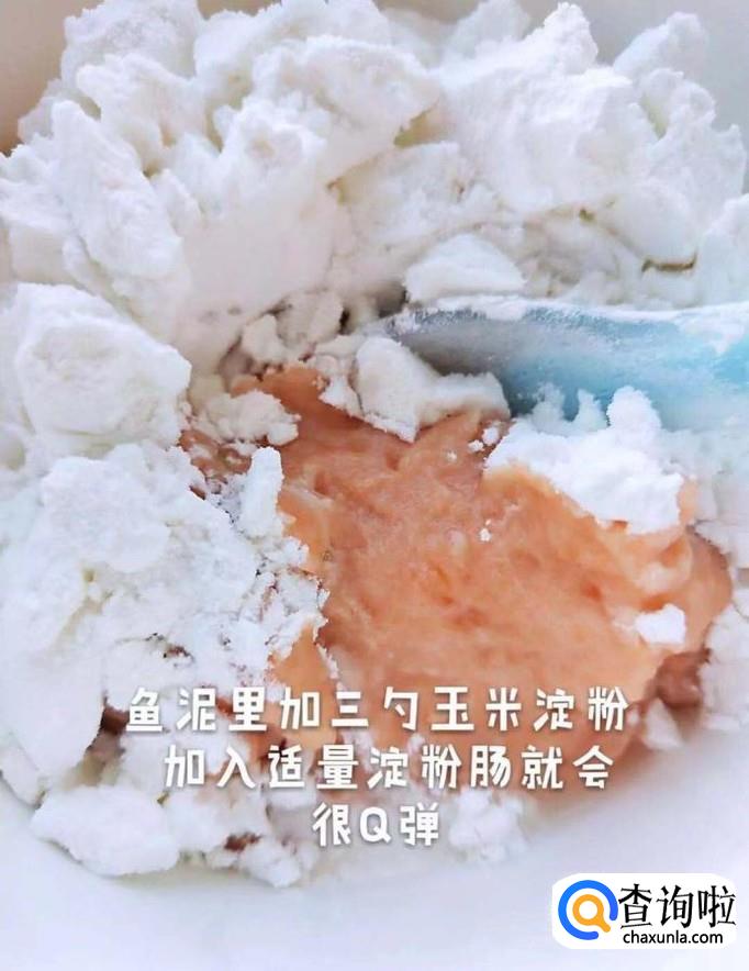 接着在鱼肉里中加入三勺的玉米淀粉,如下图所示。
