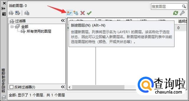 左键单击面板左上角“图层特性管理器”。
