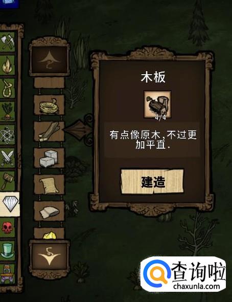 打开“精炼”栏,就是有一个钻石那个图标,建造木板。