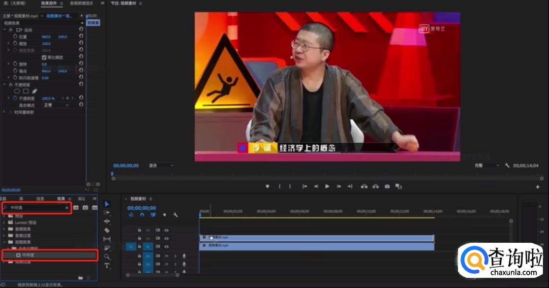 如图左下角搜索【中间值】,然后点击【中间值】。