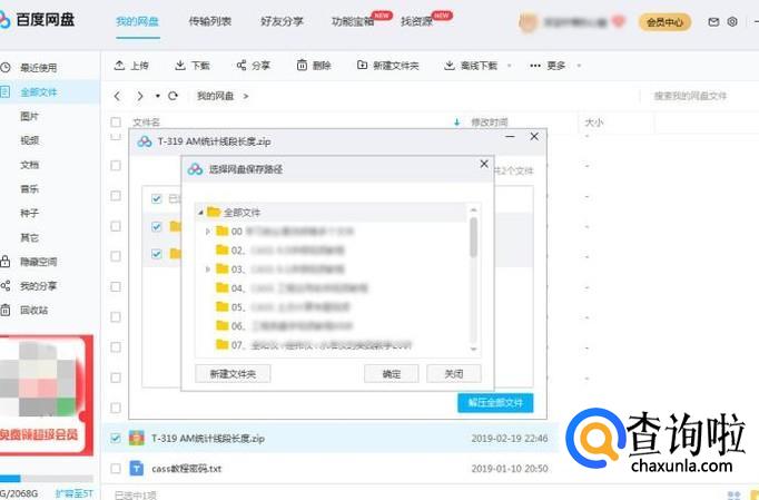 点击”解压到“后,在”选择网盘保存路径“中选择要保存的位置或新建文件夹后确定保存位置。
