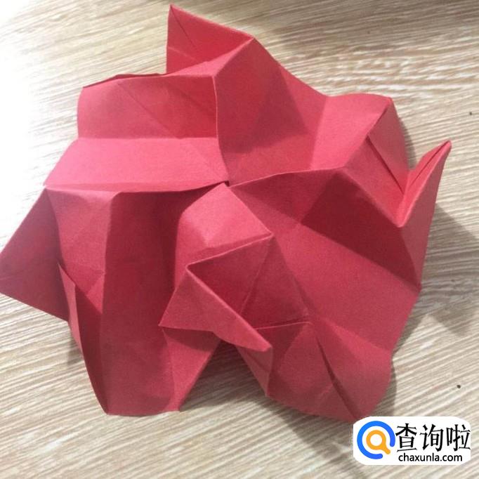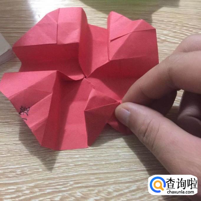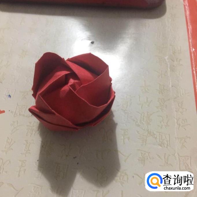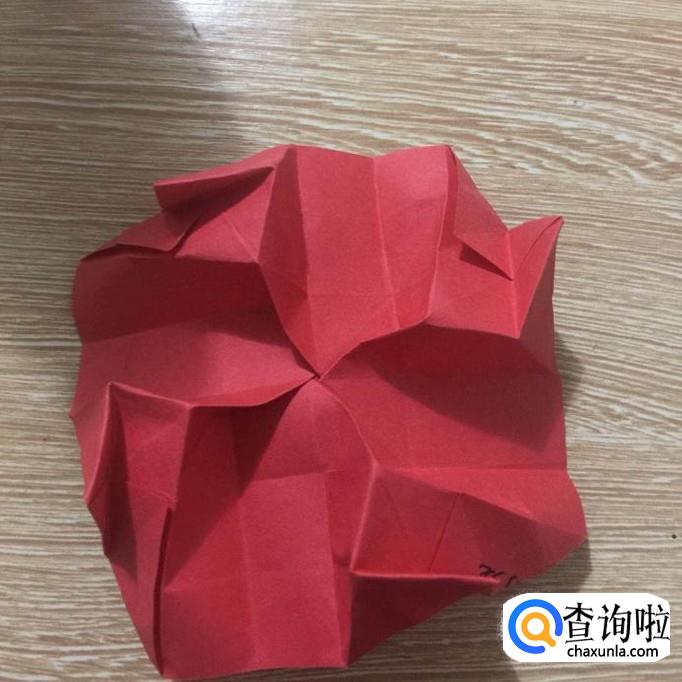 最后将四个角依次插进邻近内部。最后反个面就可以了,一个川崎玫瑰就做好了。