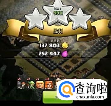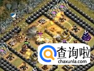 然后就可以放出巨人开路,再放武神和法师,打掉前面大部分建筑之后再放野蛮人之王,然后看情况给治疗术。