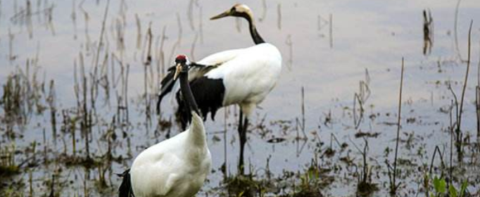 鹤类的脚趾和头部构造与行为如此巧妙配合,完美无缺地适应了沼泽地的生活环境,这是长期自然选择的结果。