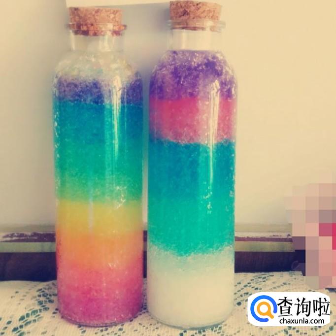 而且,利用水晶泥颜色不同,密度不同的特性,还可以用来做成漂亮的彩虹瓶,美丽的让人一眼就会爱上它。