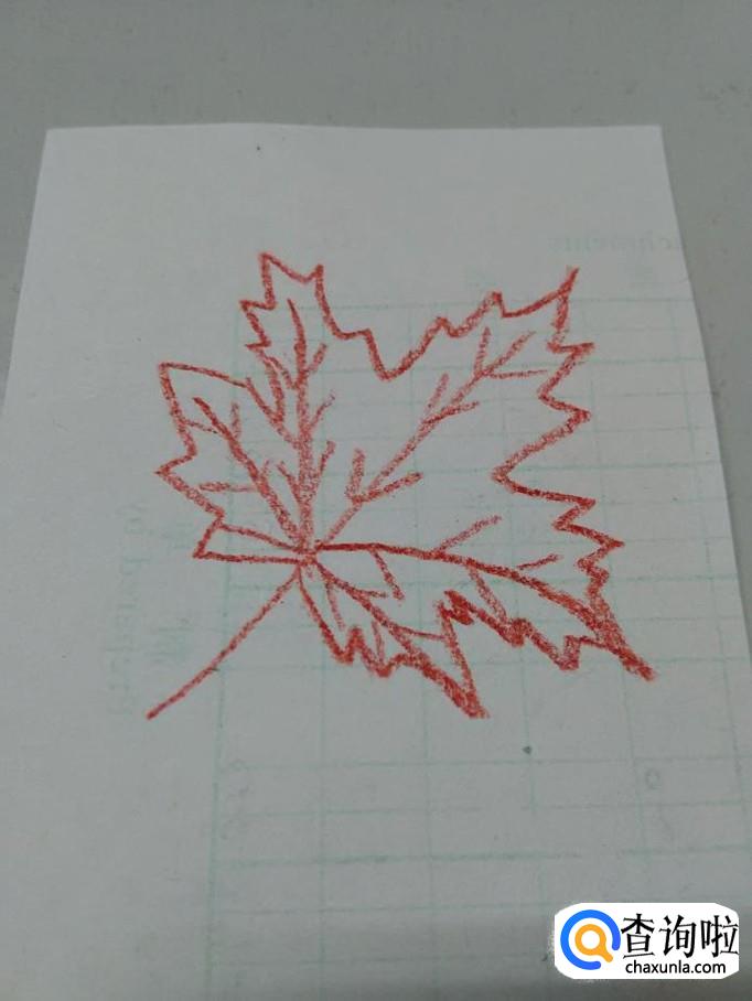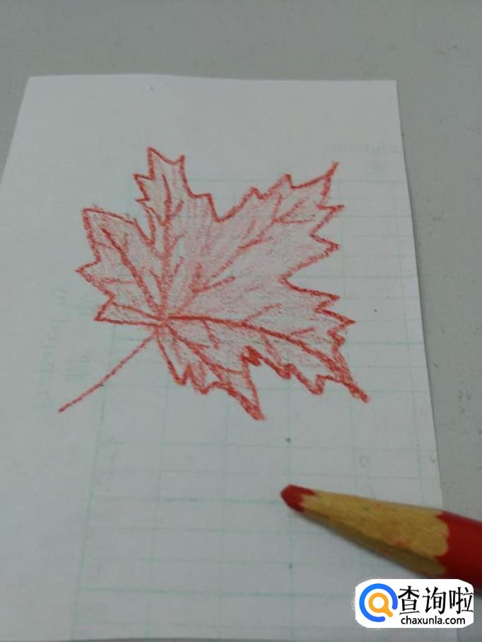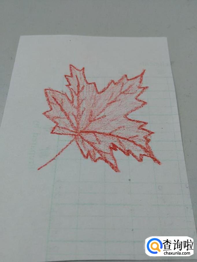 最后用红笔轻轻的将叶子涂上红色,枫叶就画完了。