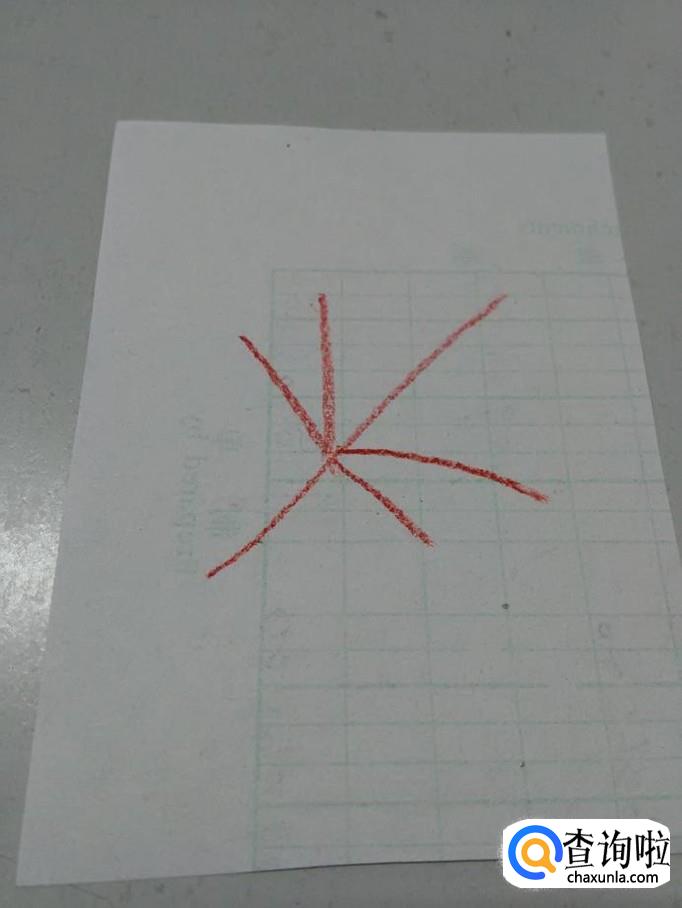 先用笔在纸上画五条相连的弧线,五条线相交在一点,表示几根主要的叶脉。