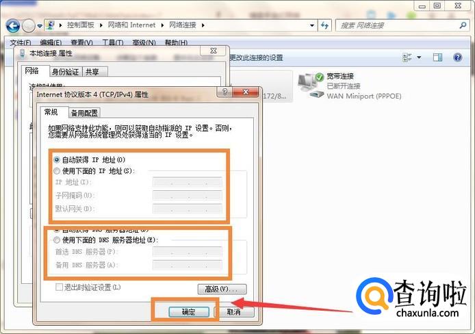 进入后选择【自动获得IP地址(0)】和【自动获取DNS服务器地址(D)】,然后点击确认就完成设置了,之后就可以正常连接网络上网了。
