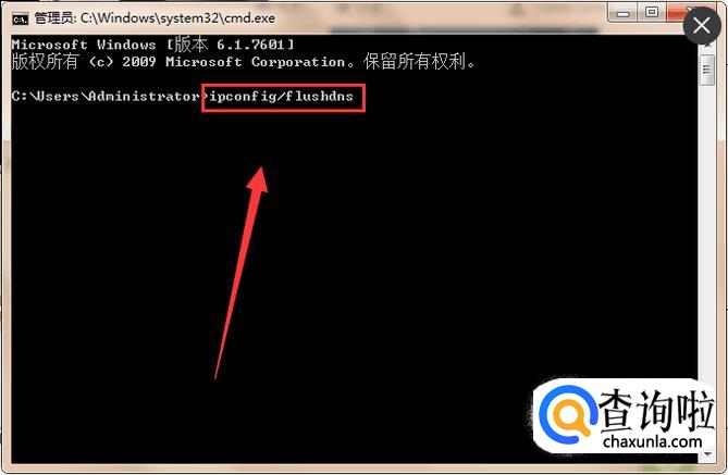 输入【cmd】点击确认,弹出窗口之后,在窗口里输入【ipconfig/flushdns】。