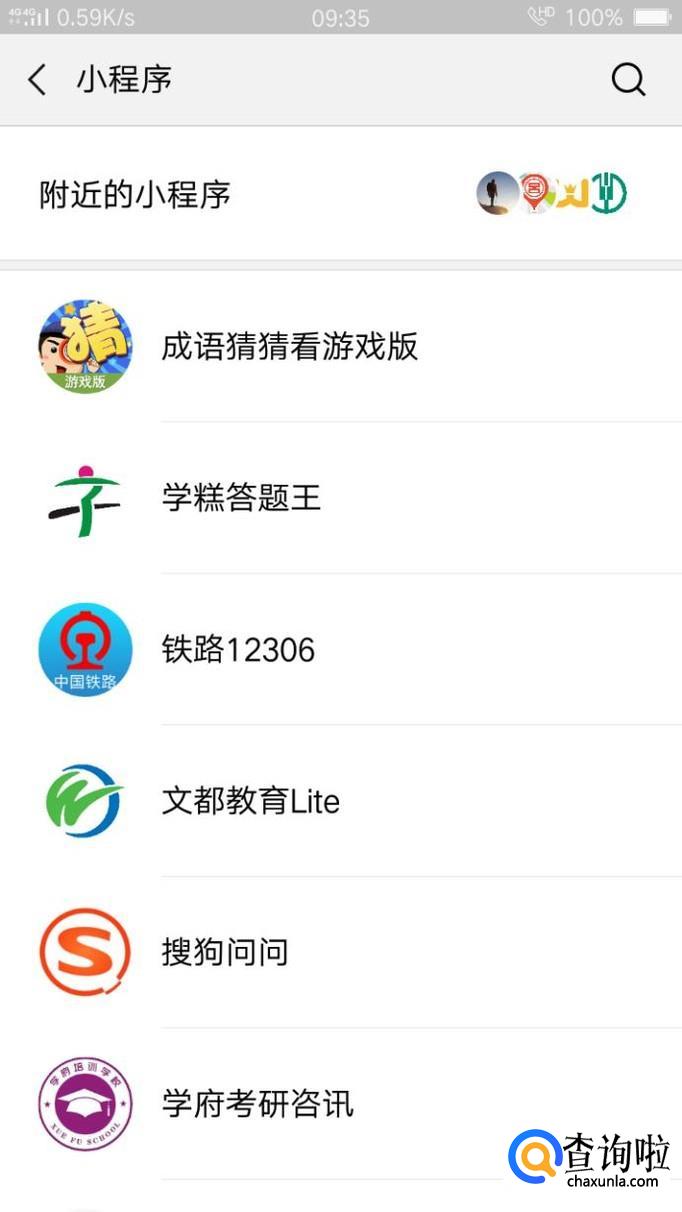 首先打开微信,下滑,出现小程序的界面,点击更多。