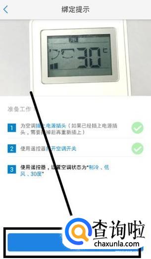 按着操作提示,使空调遥控设置为“制冷、低风、30度”,点击下一步,如图所示。