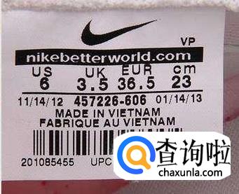 此外就是看鞋标了,这最能够看出来,注意看看文字之间的间距是不是一样,并且查看标准尺码是否对应。