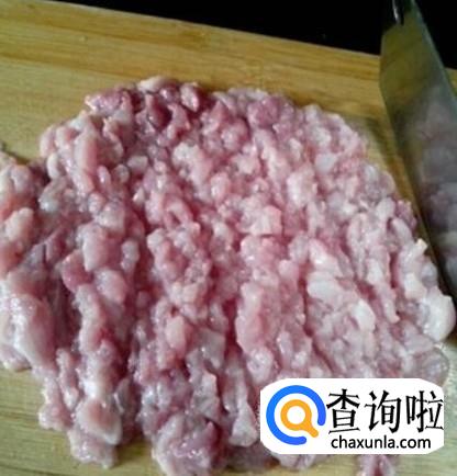 取适量的瘦肉,量的话要看自己能吃多少来决定,把瘦肉洗干净,剁碎,加上一点盐,淀粉揉搓,搅拌均匀。