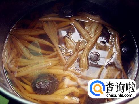 如果我们做的是香菇汤的话就加入生姜,香菇,黄花等材料进去,然后倒入适当的凉水,再放入我们的瘦肉。