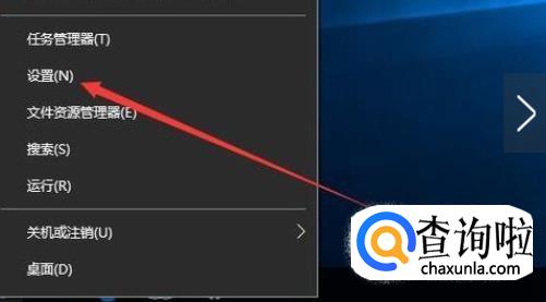 打开win10之后,使用鼠标右键单击左下角的开始图标,随后在超级菜单界面中单击打开 设置 界面。