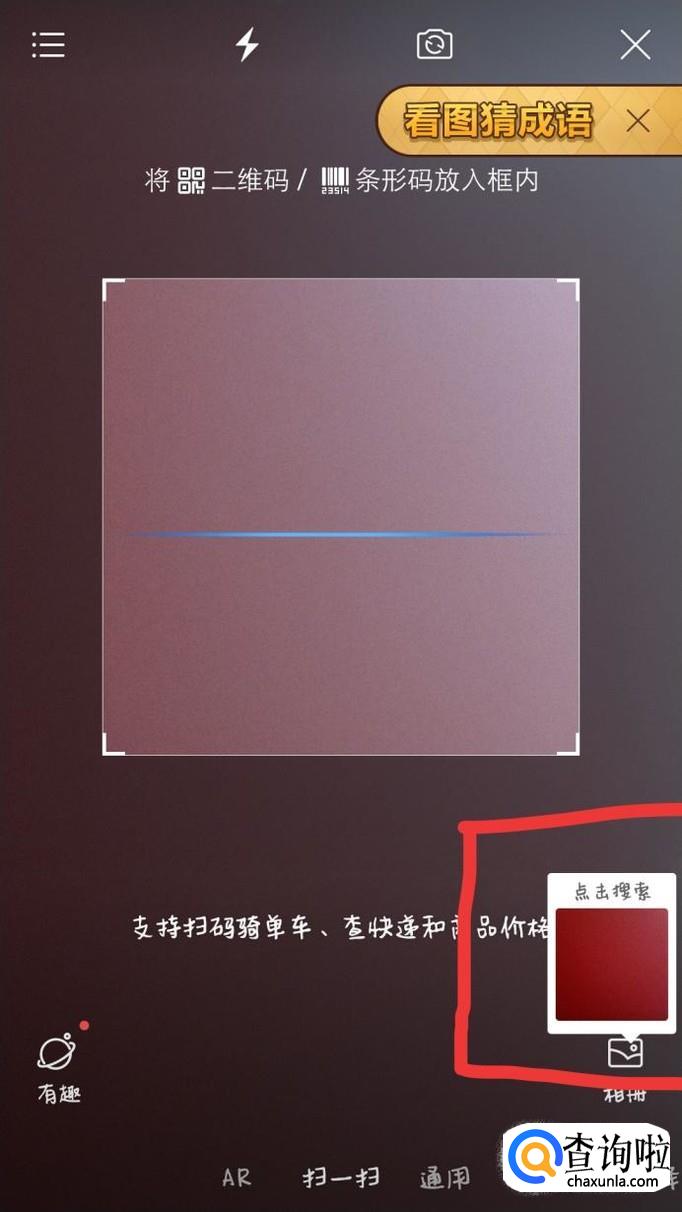 如果是照片或者截图上的二维码,点击右下角的相册,选择出该照片即可。