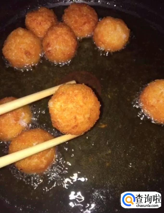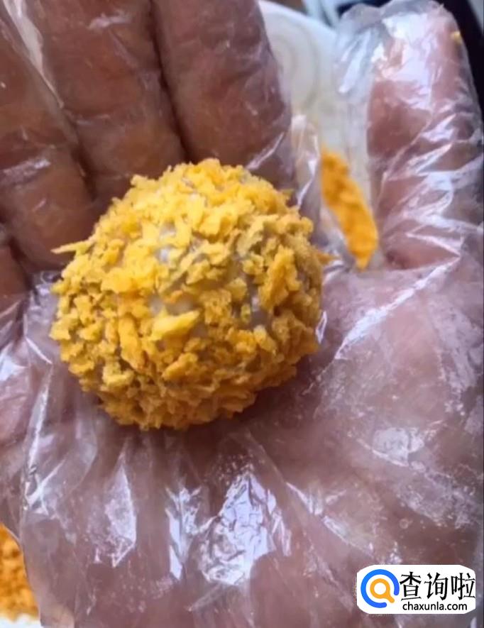 然后我们将它团成小球,再裹上一层面包糠备用