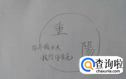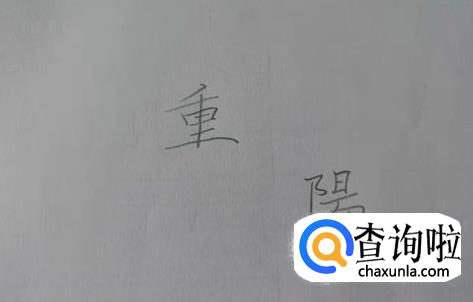 首先写出重阳两个字,一个在上一行,一个在下一行,如下图所示。