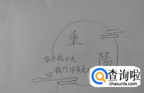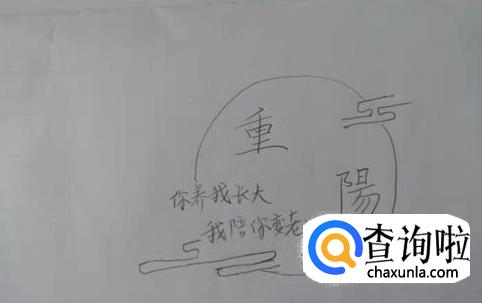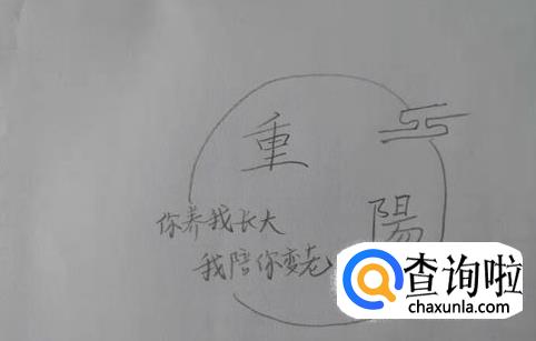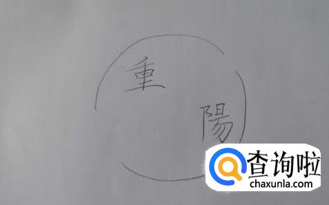 接着,画出两边开口的圆圈,把重阳二字包围起来。