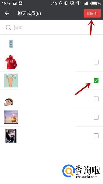 进入删除成员界面,点击想要踢掉的成员,点击“删除”