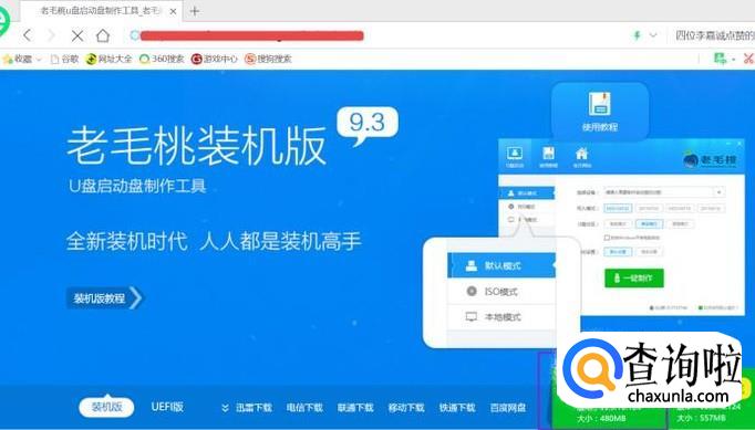 在浏览器中搜索老毛桃官方网站,进入网页后,我们点击右下方的装机版下载;