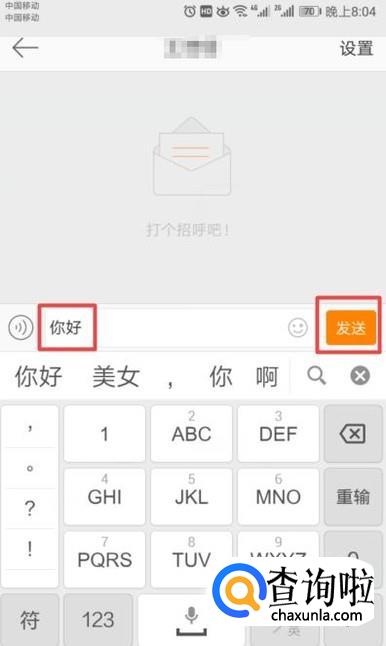 之后我们输入信息,然后我们点击发送,这样我们就给对方留言了。