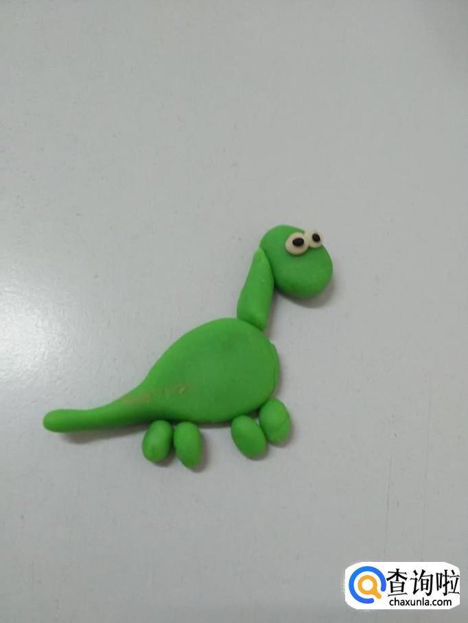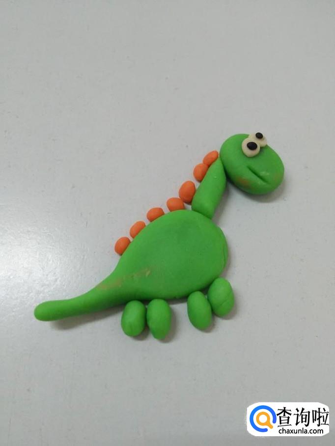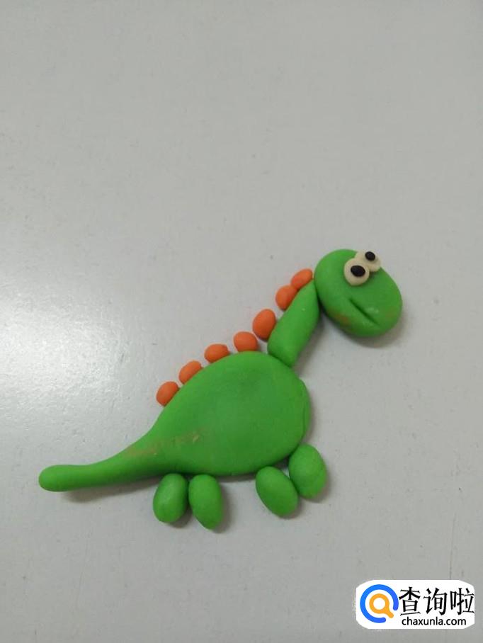 最后,用桔色团几个小球,粘在脖子和身体上方,当作背部的隆起,恐龙就做完了。