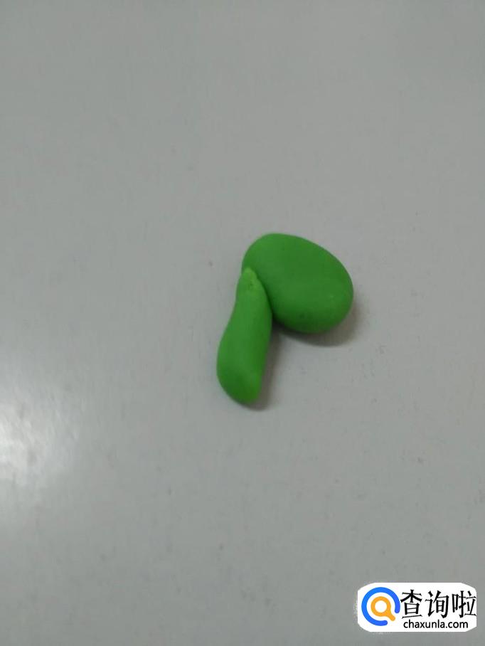 再用绿色捏一个圆条,粘在头的下方,当作脖子。
