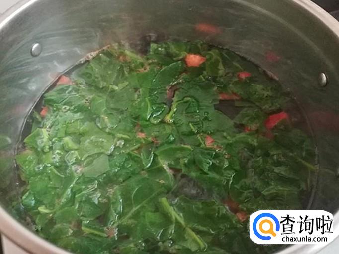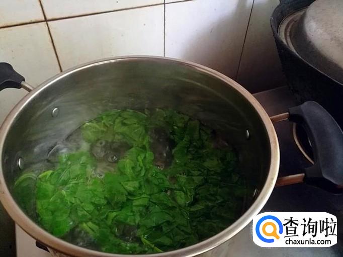 上菜锅,加适量的清水,烧开后加入切好的猫耳菜进行烧煮。