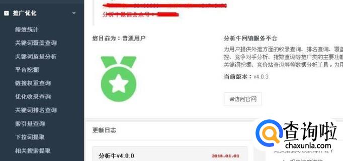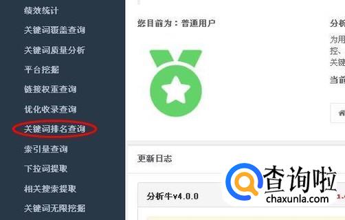 在“分析牛网销服务平台”首页,左边的菜单栏中点击“关键词排名查询”。