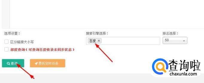 在搜索引擎一栏中选择“百度”,然后点击查询,等待1分钟这样,结果就出来了。