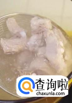 然后捞出,将排骨倒入锅内飞水。