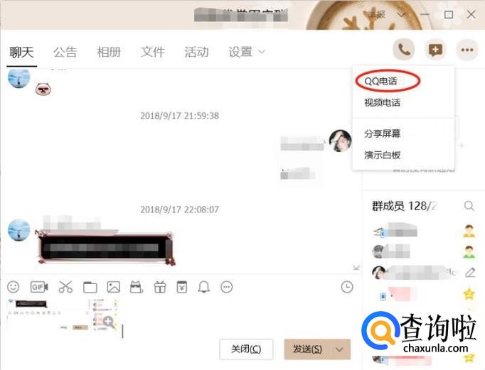 在当前群聊里面,点击右上角的电话图标,会弹出QQ电话和视频电话之类选项,选择QQ电话,就可以和群内成员进行语音聊天或者连麦唱歌了。