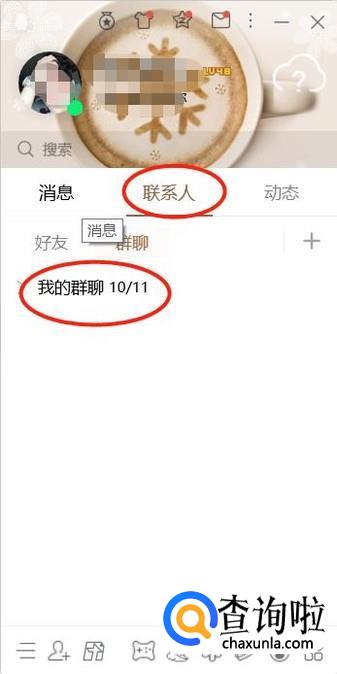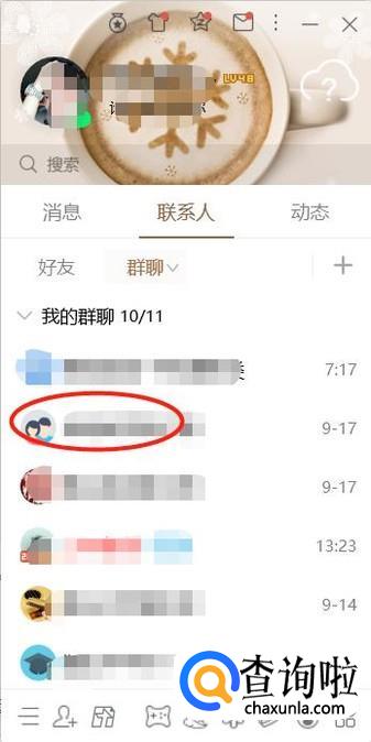 登录成功后点击联系人,就会看到好友和群聊两个选项,选择群聊,就看到你QQ里面的群。
