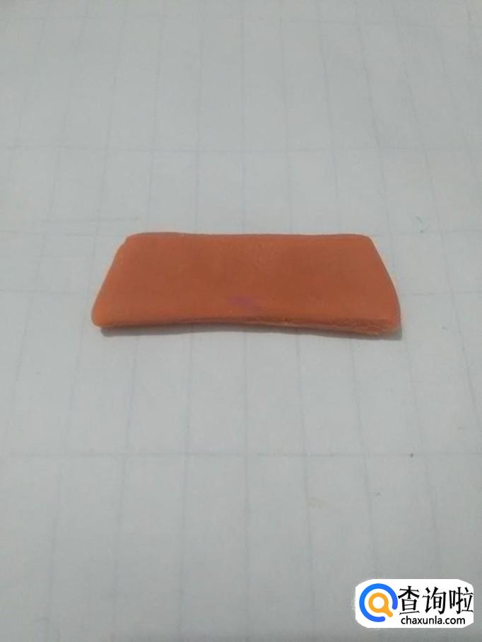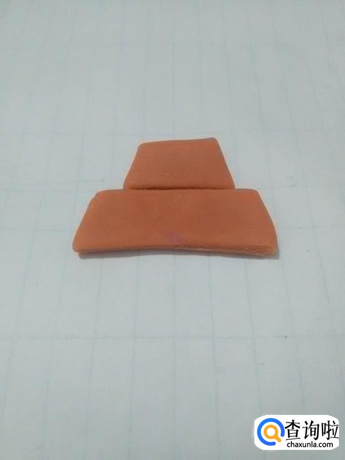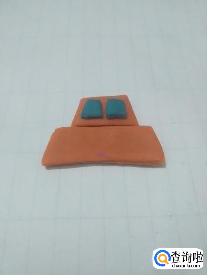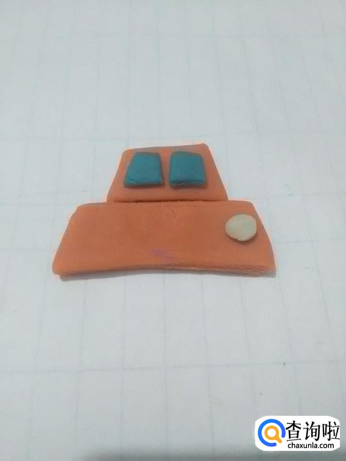 再用橘色彩泥捏一个更小的梯形,粘在车身上面,当作车顶。