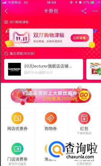 获取天猫津贴的方法有很多种,第一在首页的活动中开宝箱,或者抢红包等都有机会获得。如果没有得到的话可以在我的淘宝里面点开卡券包。在卡券包里面我们可以用积分来抽取津贴,10积分一次,正常10块津贴,小概率抽不到。