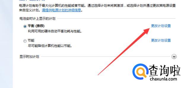 点击右上角的“更改计划设置”,如图所示位置。